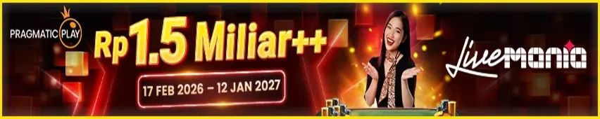 LIVE MANIA Turnamen oleh Pragmatic Play akan berlangsung mulai 17 Februari 2026 00:00 WIB hingga 12 Januari 2027 23:59 WIB. Total hadiah turnamen adalah RP 1.5 Miliar dan akan dibagikan kepada 21.340 pemain teratas yang memiliki skor tertinggi pada papan peringkat.
